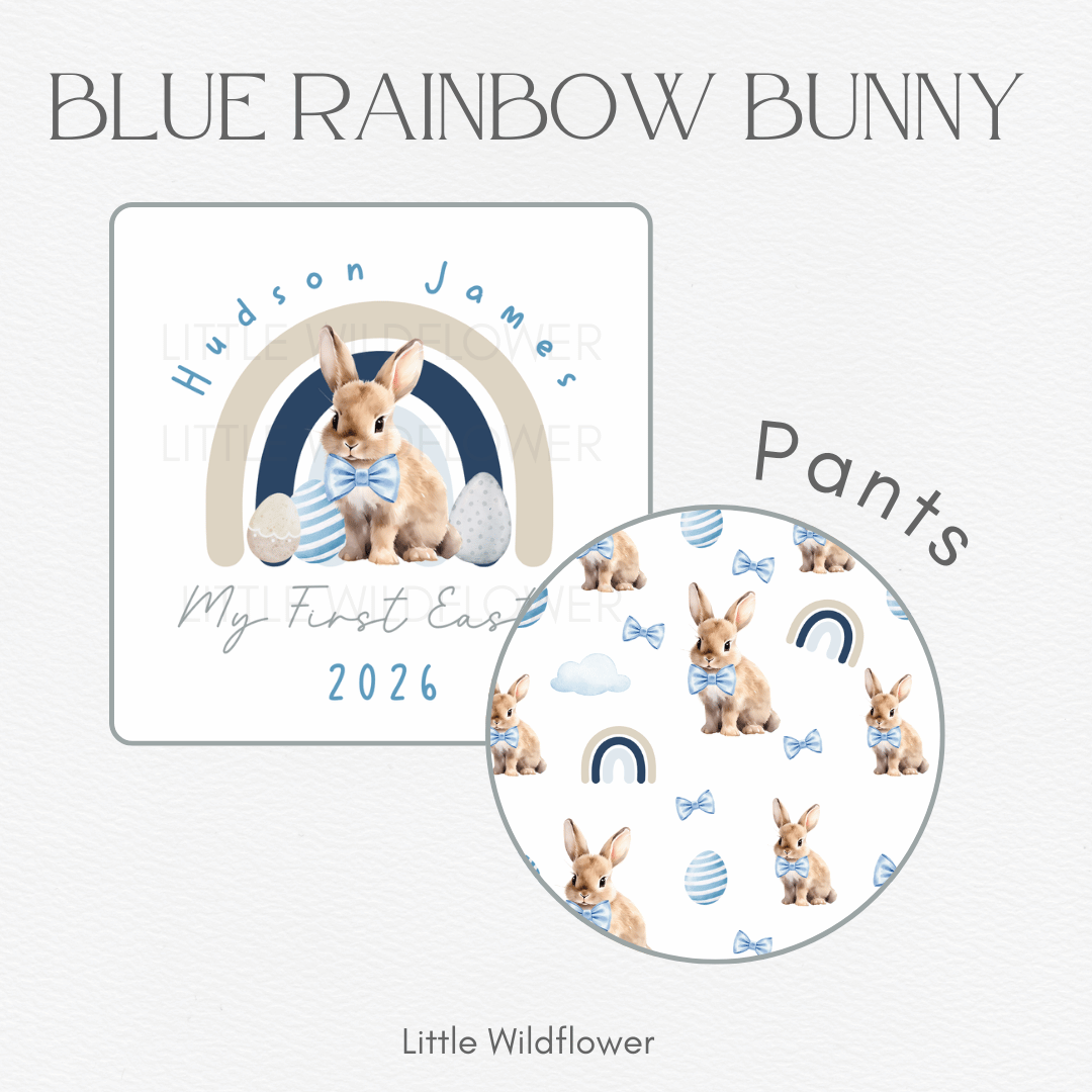 Our Winter Easter Outfits are thoughtfully designed to keep your little one warm, comfortable, and beautifully dressed for Easter celebrations. Each set includes a long sleeve personalised 100% cotton onesie, custom printed long pants, and a matching beanie or headband for the sweetest cozy finish.