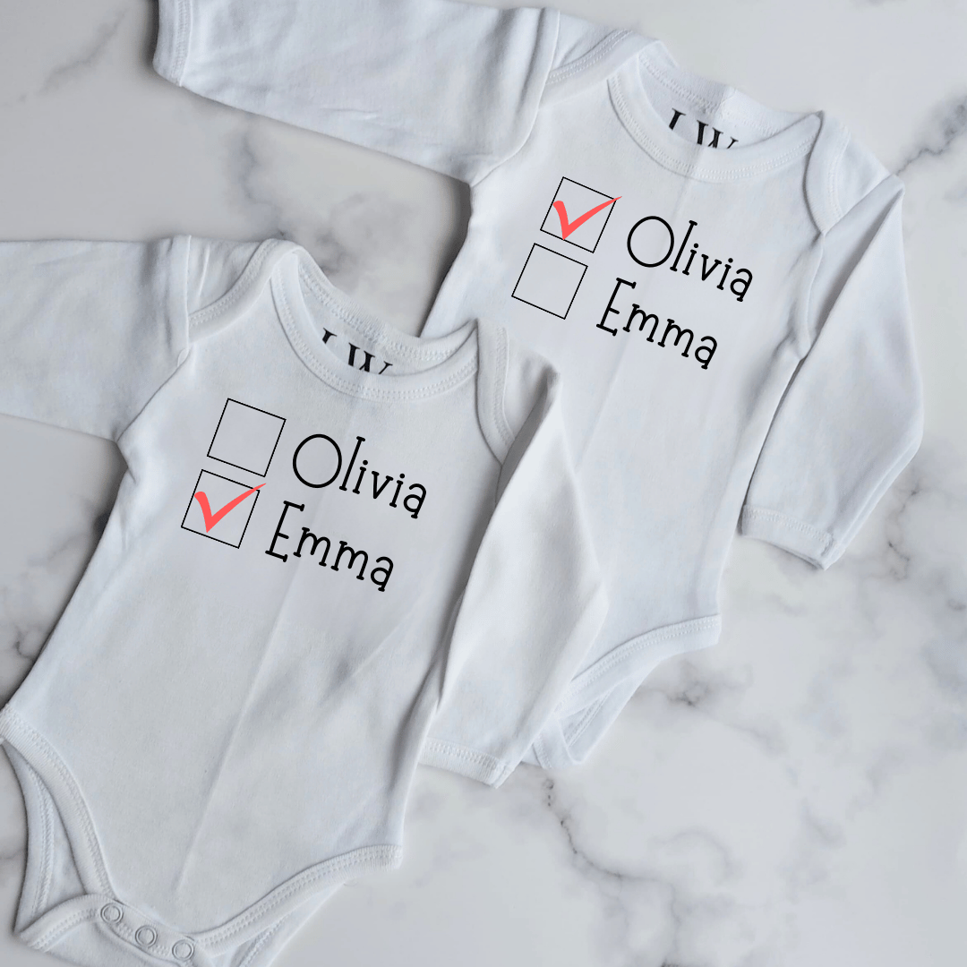 • Load image into Gallery viewer, Name Check Twin Onesie Set